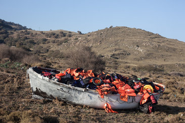 and personal belongings lost or discarded by migrants after their arrival at Lesbos, Greece.