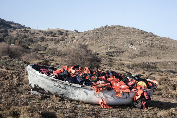 The Rescue, 2015 is an alternative representation of migrants through a symbolic act of rescue and re-appropriation of photographs and personal belongings lost or discarded by migrants after their arrival at Lesbos, Greece, having made the six-mile sea crossing from Turkey by small boats and overcrowded rubber rafts..